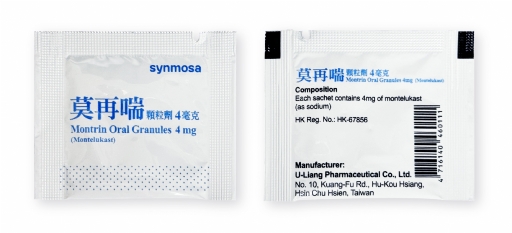 Montrin Oral Granules 4mg/sachet 產品編號 Ingredient montelukast 4mg/sachet HK Reg. No. HK-67856 Product Consultation Related Products Synvent HFA 100 Inhaler 100mcg/dose Duasma HFA 200 Inhaler 200mcg/dose Trisonin Aqueous Nasal Spray 55mcg/dose Besonin Aqua Nasal Spray 64mcg/dose Back